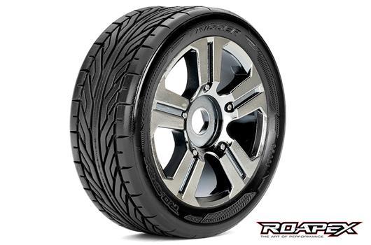 Tires - 1/8 Buggy - mounted - Chrome Black wheels - 17mm Hex - Trigger (2 pcs)